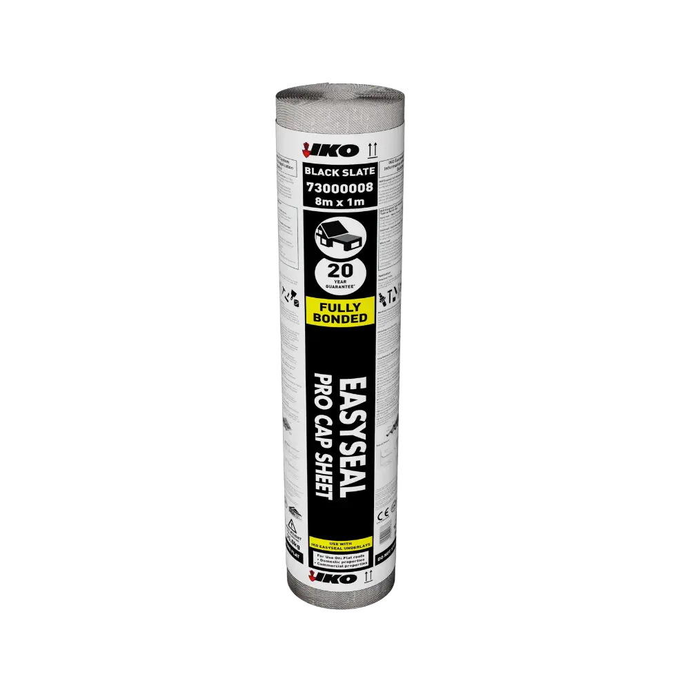 IKO Easyseal Pro can be used in a comprehensive IKO Easyseal system and has a selvedge edge (90mm) and end lap for ease of lap jointing. The IKO Easyseal self-adhesive roofing system has been designed to remove the requirement for hot bitumen or naked flames for anyone installing roofing membranes.