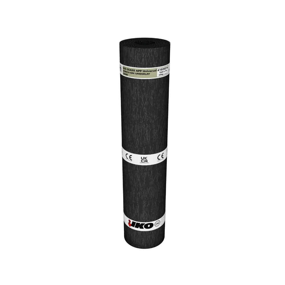 The IKO Glass APP Universal Underlay is an APP torch-applied underlay with a standard glass-fibre-based carrier. This product is surfaced on the underside with a flame dispersible polyethylene film, in order to allow torch application.