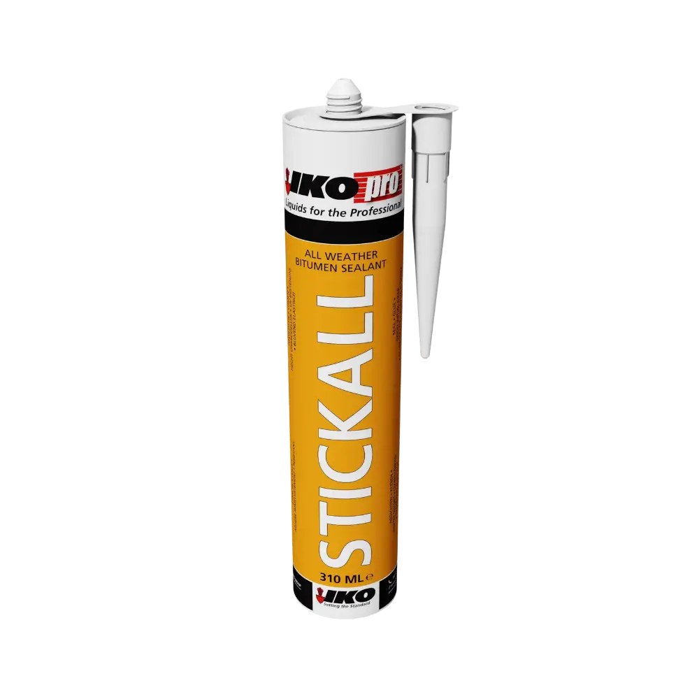IKOpro Stickall is a dense, all weather, bituminous sealing glue that remains plastic under normal temperatures and adheres well to most building surfaces, including wet surfaces.