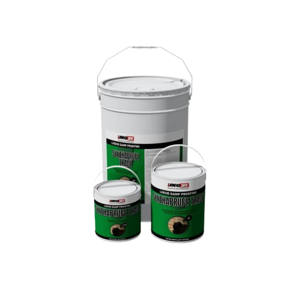 IKOpro Synthaprufe Trade is used for internal application to damp-proof masonry walls and concrete floors, before they receive plaster coats and sand/cement screed finishes, respectively.