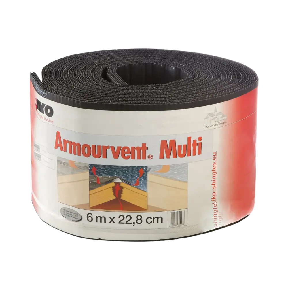 In conjunction with IKOslate ridge and hip tiles, IKO Armourvent provides a mechanically fixed ridge ventilation system which complies with BS 5534 (Slating & Tiling) and BS5250 (Control of Condensation).