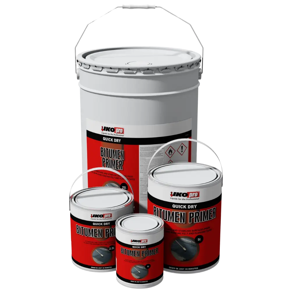 IKOpro Quick Dry Bitumen Primer is a deep penetrating bituminous solution for stabilising dusty and porous surfaces prior to the application of IKO roofing systems. It dries in approximately 30 minutes with no residual tack.