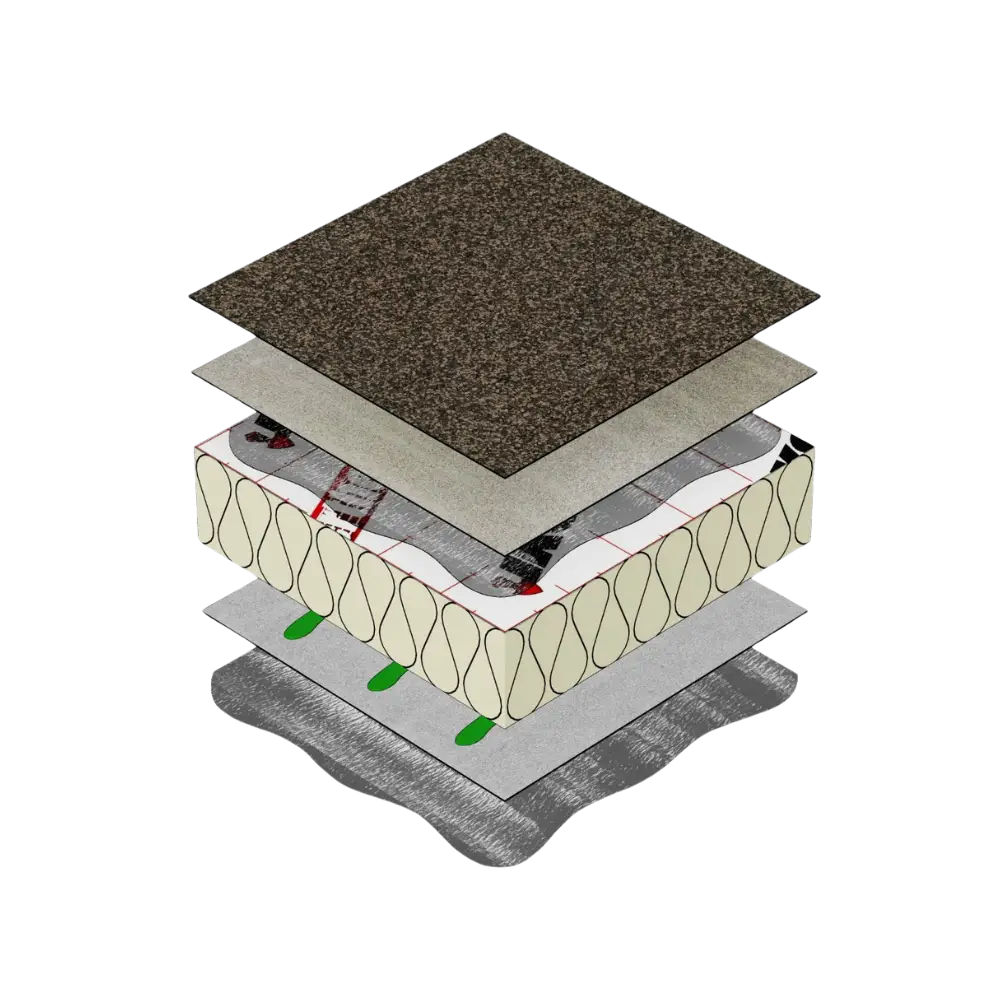 IKO Protorch can be used as the capsheet on suitable pour and roll or torch-on underlays, as part of a built-up system or as a refurbishment overlay to existing asphalt or selected mineral surface felt.