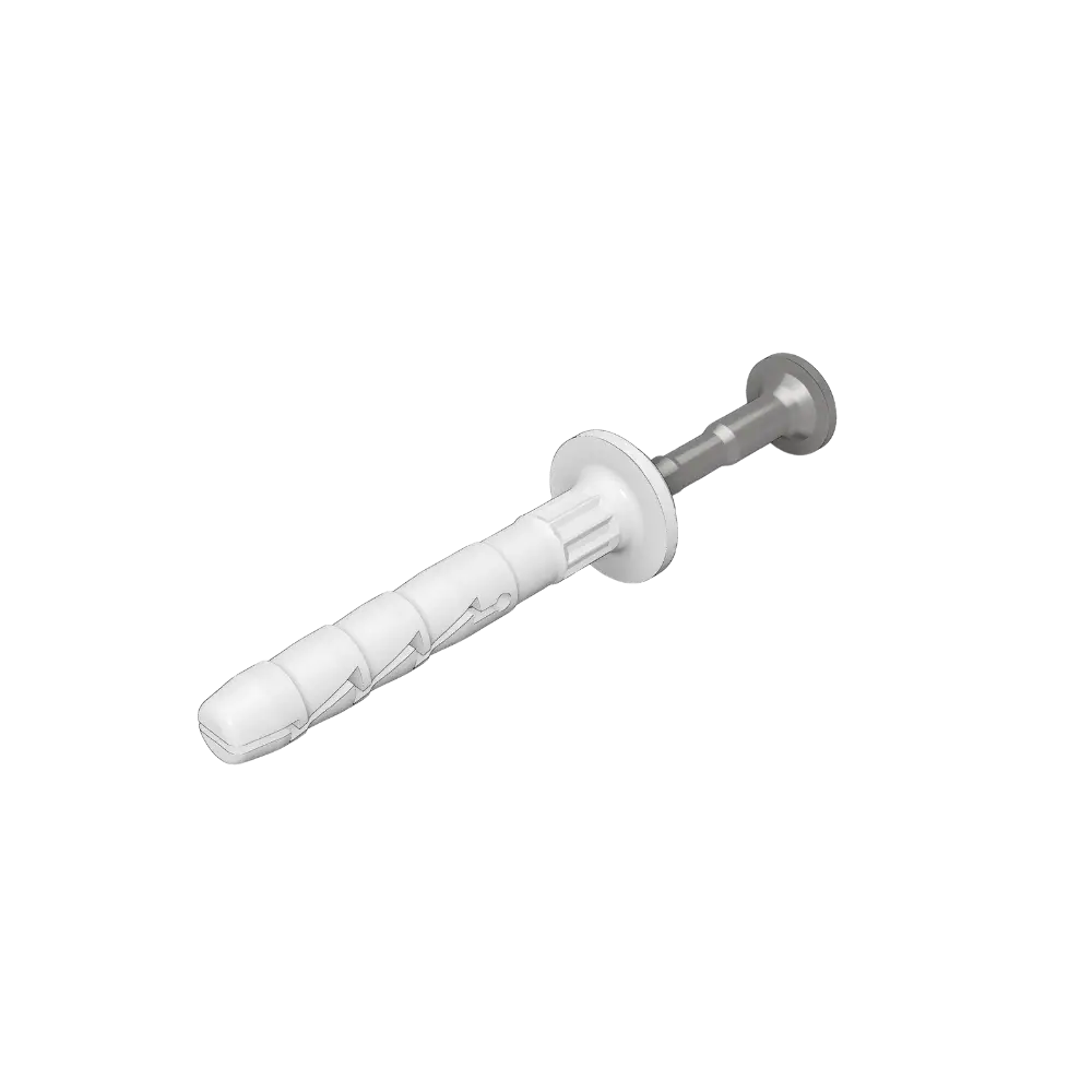 The central 3.8mm diameter pin is then hammered into place so that the barbed portion of the fixing plug splays out into the substrate, giving a secure grip and high pull-out resistance.
