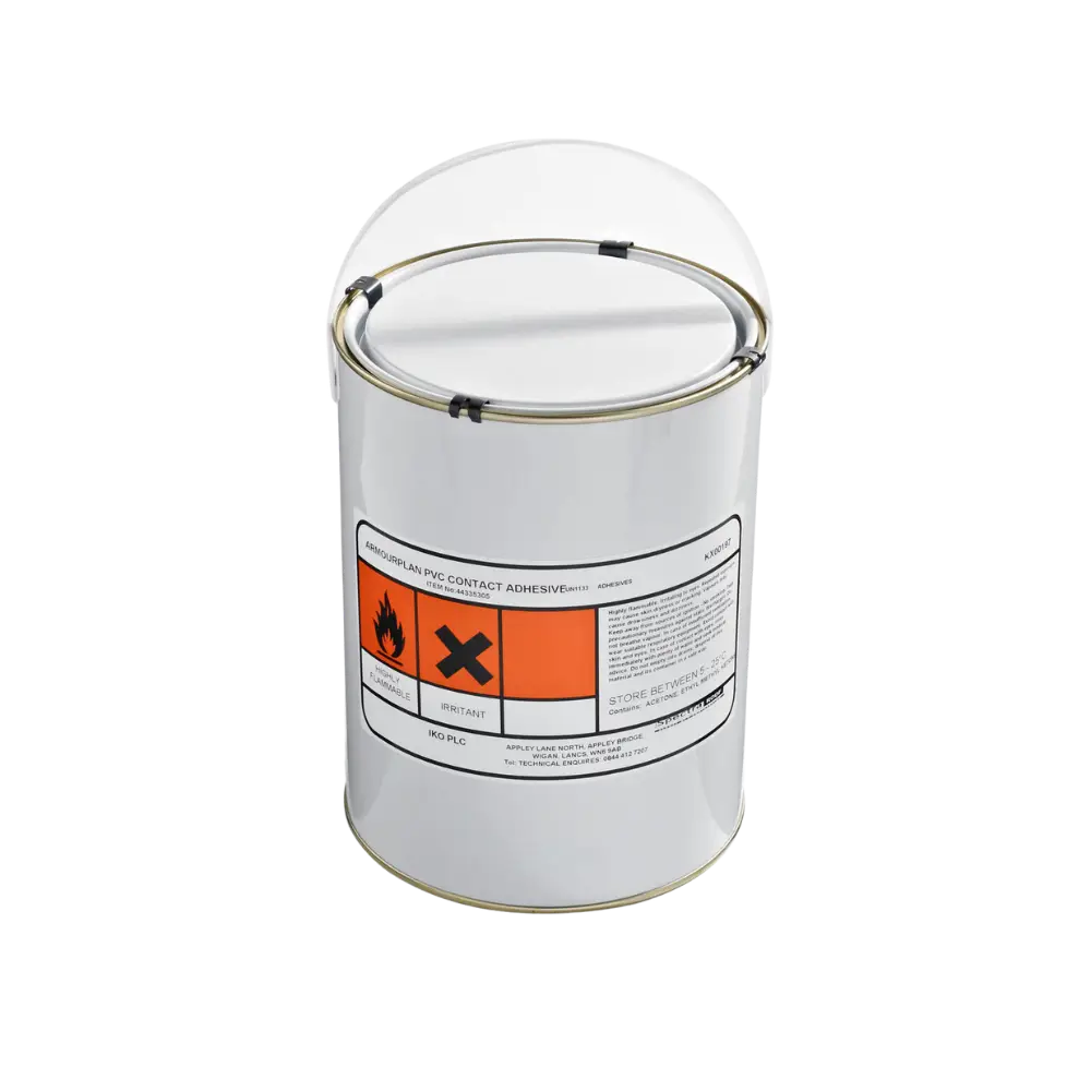 A ready-to-use, nitrile, rubber-based contact adhesive used for adhering IKO Armourplan SM and P membranes to various substrates. IKO Armourplan PVC Contact Adhesive is easy to apply using a brush or roller straight from the can.